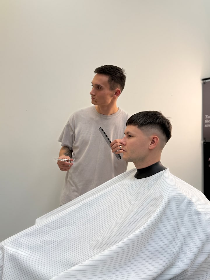 Trabajo con todo tipo de cabello y barba, ofreciendo cortes de pelo, depilación con cera y servicios de recorte corporal.