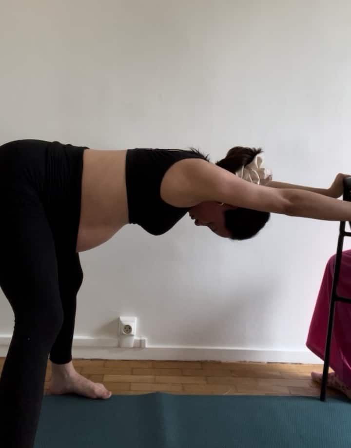 Esta sesión está dirigida a las futuras mamás y a los copadres que deseen unirse a ellas. Ella sigue las necesidades de cada persona y se centra en el trabajo del perineo según el método de Gasquet, el estiramiento, el fortalecimiento muscular y la meditación en torno al embarazo. Un tiempo de discusión permite definir los deseos y es seguido por una propuesta ajustada para un momento de descanso y cuidado.