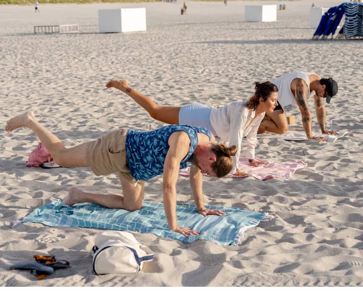 ¡Únete a nuestra clase de estiramientos en Muscle Beach, Miami!