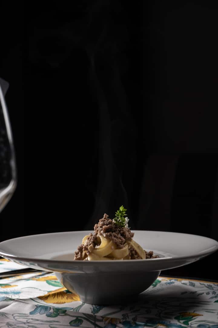 Este es un viaje que consiste en 5 platos preparados con ingredientes frescos y de temporada, para una cena refinada y agradable. Además de los sabores principales, inspirados en la cocina típica del Lacio, Umbría y Sicilia, hay una entrada y donas para terminar. La configuración de la mesa y el servicio con un maître d' también se cuidan cuidadosamente, recordando el estilo de un restaurante.
