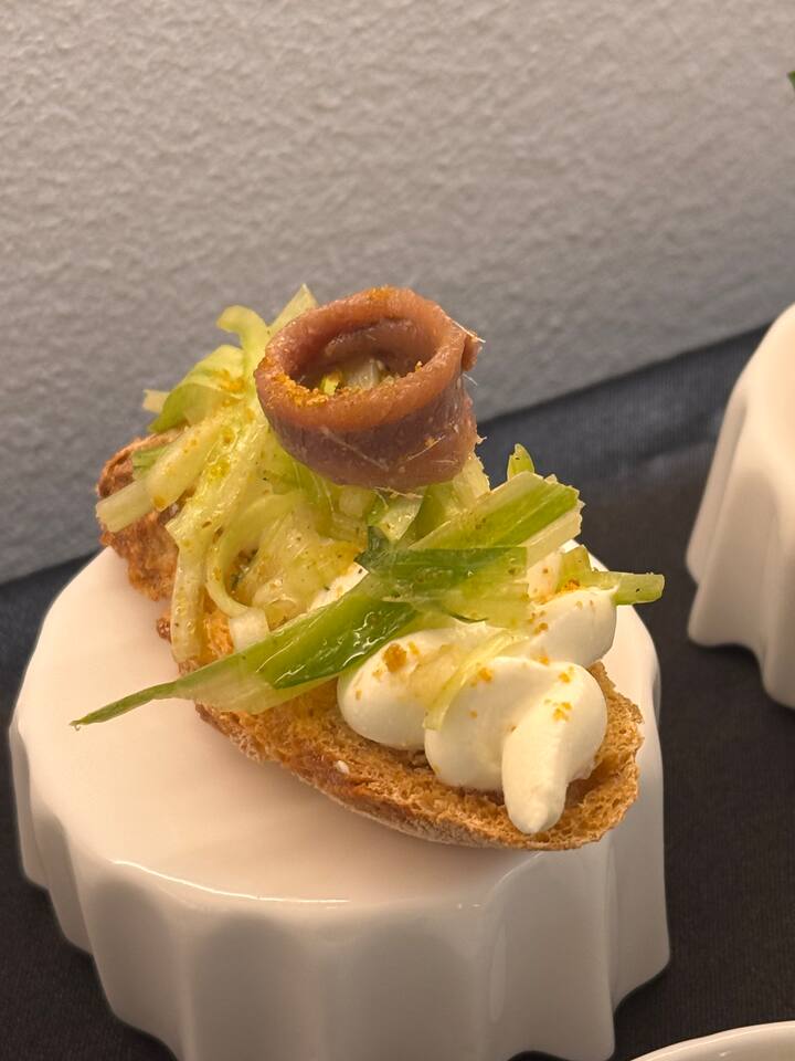 Esta es una configuración gastronómica diseñada para eventos corporativos y privados. El menú incluye una selección de canapés refinados y una botella de vino para cada 6 personas.
