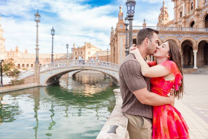 En esta sesión se incluyen fotos por La Plaza de España y el Parque María Luisa. La sesión tendrá una duración aproximada de entre 30 y 45 minutos y obtendrás 30 fotos digitales editadas en alta resolución.