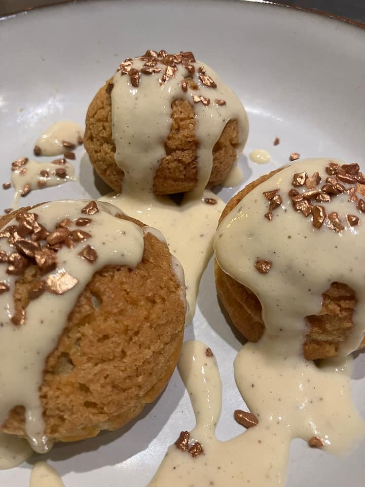 - Choux mexicanos (crema pastelera con chipotle, crema inglesa de vainilla)