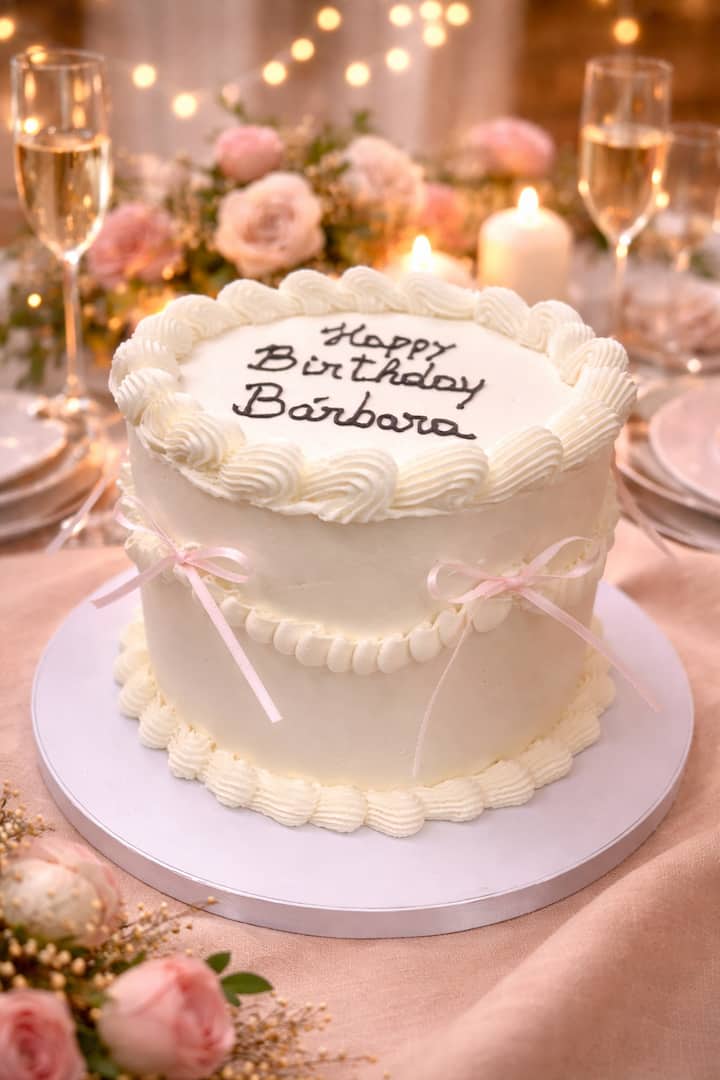 Un hermoso pastel clásico con una delicada decoración de crema de mantequilla, perfecto para cumpleaños y ocasiones especiales.