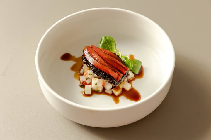 Menú de 4 tiempos con 2 aperitivos, un plato principal y un postre, perfecto para los amantes de la gastronomía