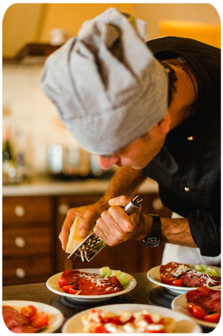 Esta experiencia culinaria en casa está diseñada para sorprender y deleitar tu paladar. Este paquete incluye un menú de 4 platos con especialidades tradicionales de la Toscana: un viaje culinario elegante, íntimo y con servicio completo.