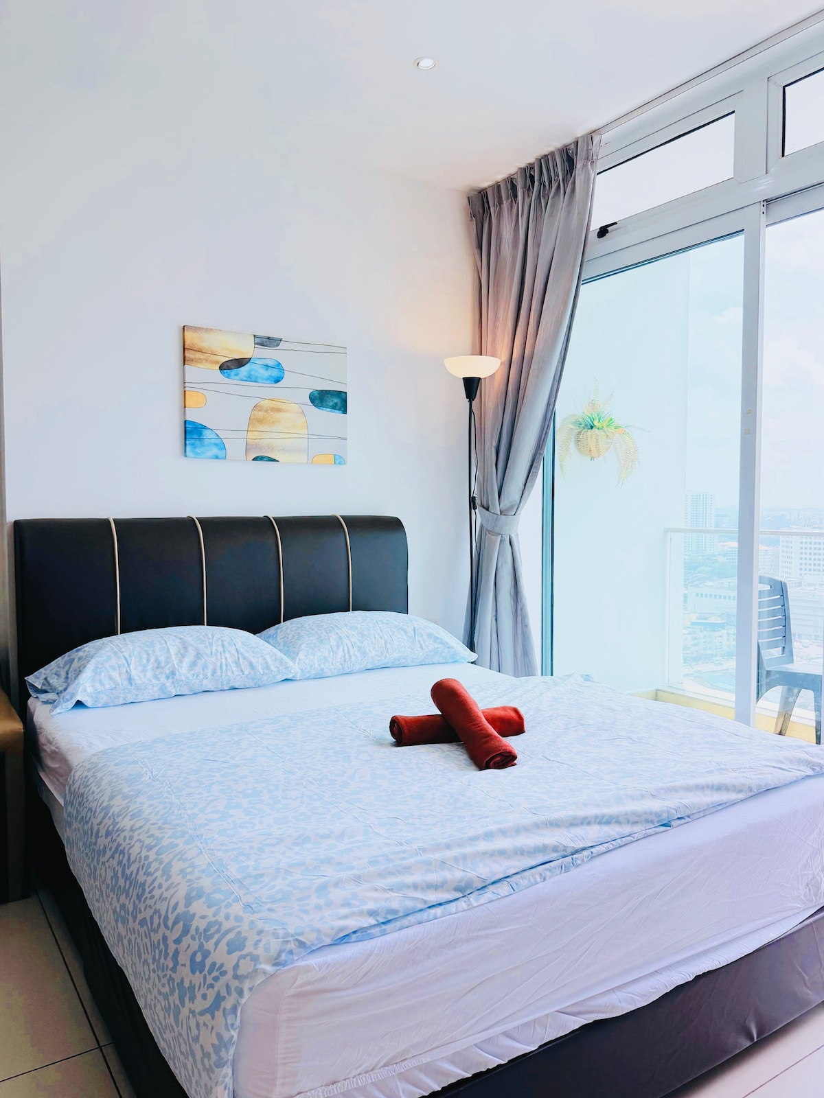 Situado en R&F Princess Cove, el departamento ofrece impresionantes vistas al mar Estrecho desde el espacioso balcón de dos camas. Está conectado a CIQ, JB Sentral, City Square y Komtar por un puente de conexión cubierto de 650 metros. El centro comercial R&F está justo en la puerta, la tienda de comestibles Jaya, la lavandería, 7-Eleven, el restaurante y la tienda de conveniencia están todos enfrente. Acceso del huésped: Nivel 8 * Piscina (se requiere traje de baño adecuado) * Centro de fitness. * Máquina de ejercicio en el exterior * Squash * Tenis de mesa - Piscina * Jardín paisajístico con jogging * Área de juegos para niños. Otras cosas a tomar en cuenta * Te enviaremos un manual electrónico de los detalles de llegada y salida después de confirmar la reservación. * Se proporcionan ceniceros en la mesa del balcón, pero no se permite fumar en interiores. * Tenemos una cocina de inducción y una cocina de cerámica para cocinar. * No hay detergente para la ropa, toallas faciales ni condimentos para cocinar. * Por favor, no te quites ningún juego.Ofrecemos estas instalaciones para todos nuestros huéspedes.