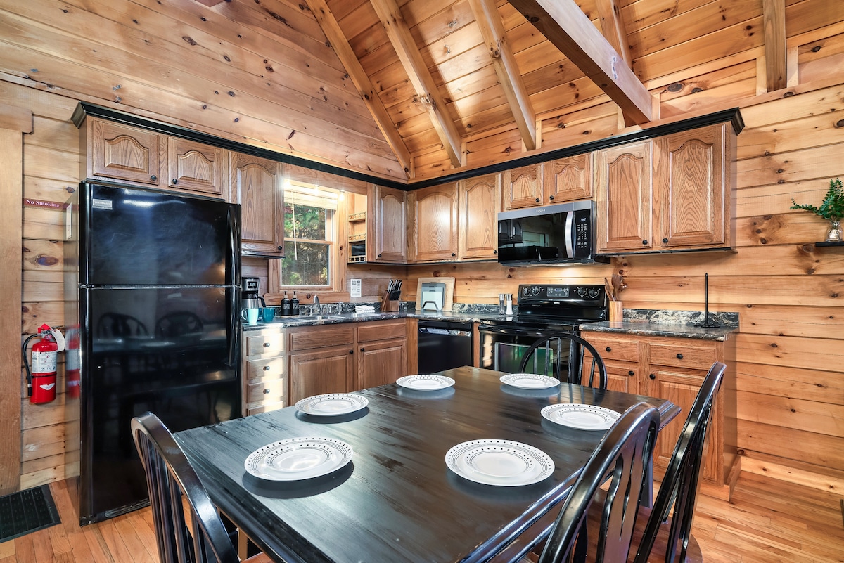 * A 2 millas de Gatlinburg y Pigeon Forge. *Mesa de billar. *Jacuzzi * Jukebox con bluetooth * Ducha de lluvia de 28" para dos *Chimenea * Cama tamaño king. *Sofá cama tamaño queen * TV Roku de 55 pulgadas *Wifi rápido *Jacuzzi. *Keurig and Drip * Tazas K y crema *Privacidad y ubicación *Batas * Ropa de cama de lujo *Parrilla de carbón. *Velas sin llama *Paquete romántico disponible (USD 40) *Salida después de la hora establecida a la 1:00 p. m. ($40) **Ten en cuenta que la cabaña está escondida en las montañas. Algunas de las carreteras pueden ser curvas y empinadas.