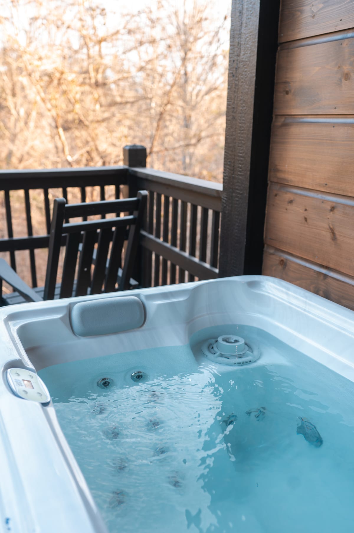 Jacuzzi privado en la cabaña Blushing Bear