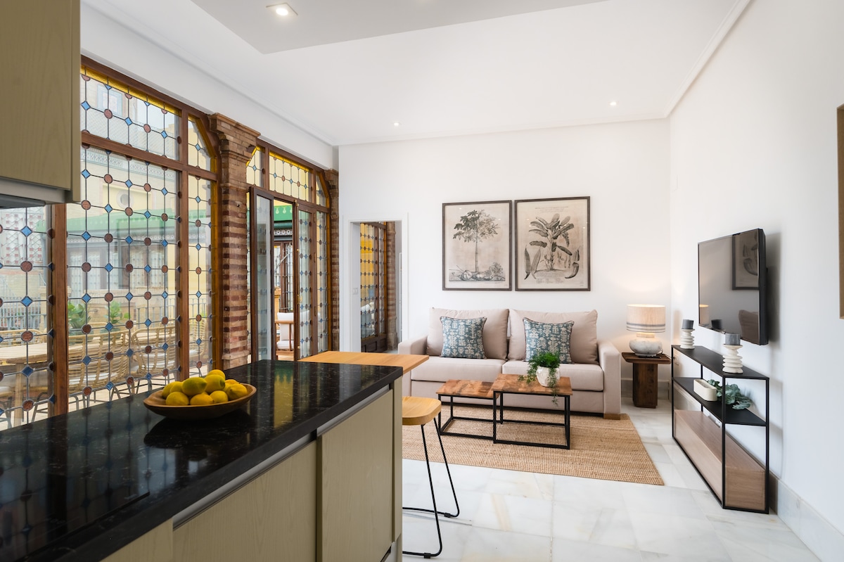 This AMAZING duplex apartment full of natural light is located in a PRIVILEGED LOCATION in the heart of historic district of Seville. This prime and quiet location has one of the best views of the neighborhood , facing a convent from the XVII century, as you can imagine, this UNIQUE atmosphere creates perfect place to relax and unwind after visiting vibrant Seville. It is as well the perfect "home base" to visit other cities in Andalusia. The apartment is located in a renovated house palace.