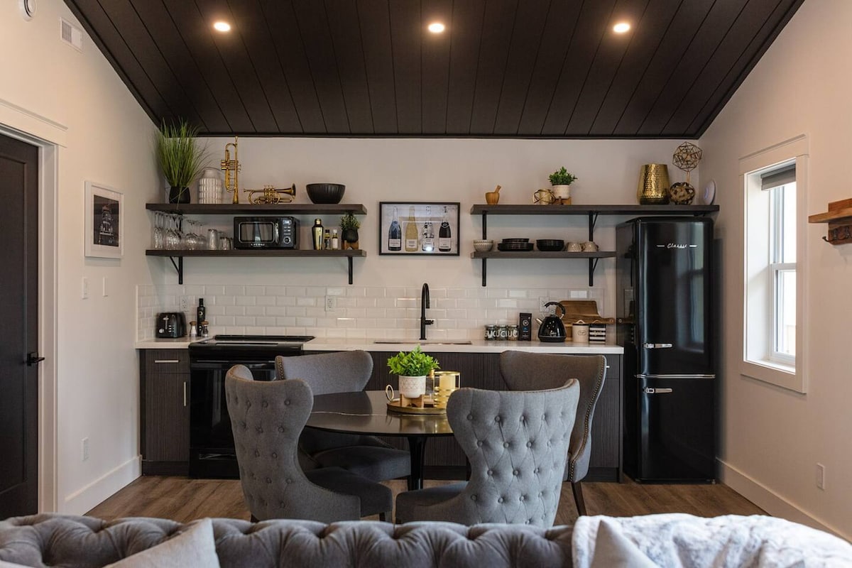 Escápate a Aux Box, una cabaña boutique de lujo enclavada en el bosque de Muskoka con tranquilas vistas al río. Diseñado para ofrecer comodidad y estilo, cuenta con calefacción por suelo radiante, gabinetes personalizados y servicios de primera calidad. Entra en tu spa nórdico privado con sauna, jacuzzi y inmersión en frío para la máxima relajación. Disfruta de un aislamiento total a menos de 10 minutos de las tiendas, los restaurantes y el encanto del centro de Huntsville. Una combinación perfecta de naturaleza y lujo te espera.