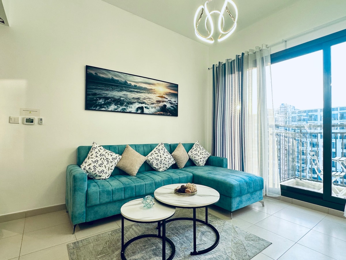 Elegante y luminoso alojamiento de 1 dormitorio cerca de Dubai Hills Park