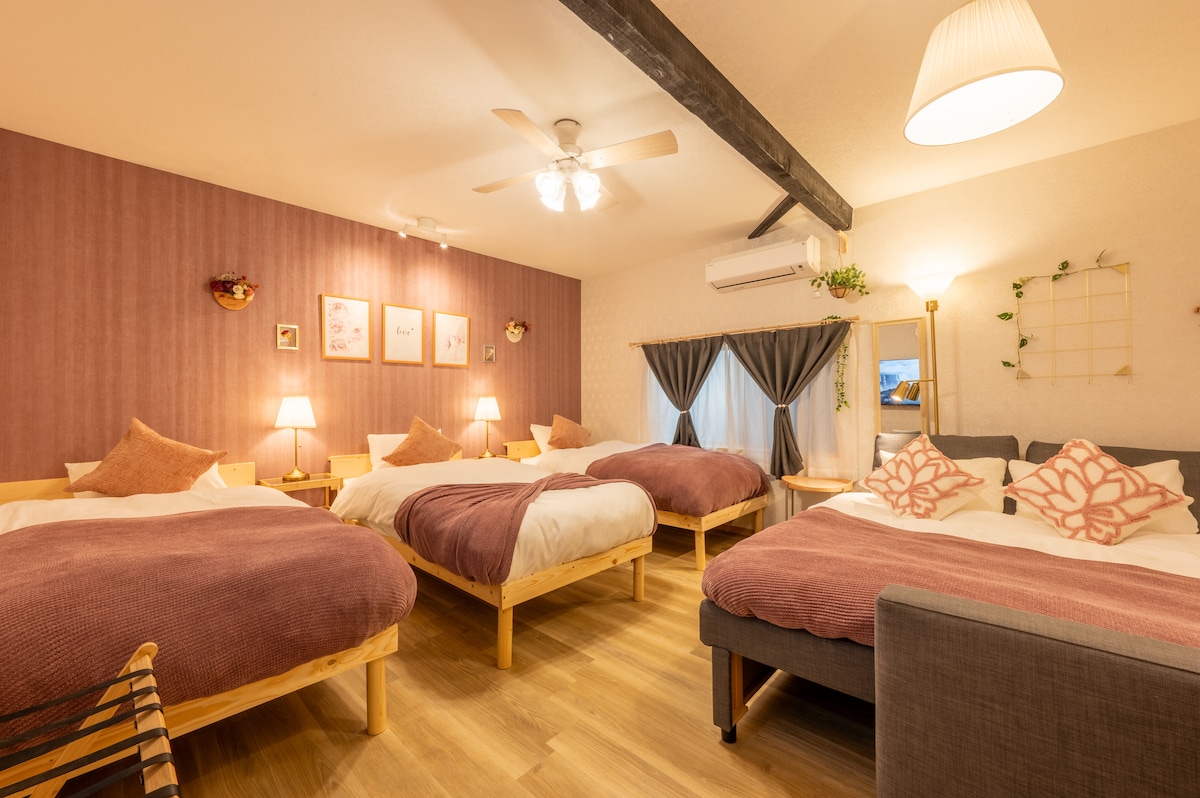 ¡Te damos la bienvenida a Rakunoyado Tamade Higashi! Este es un edificio de apartamentos de tres pisos, con cada piso alquilado como una unidad independiente. Te alojarás en toda la tercera planta del edificio, que incluye tres habitaciones, dos baños y dos aseos. Los espacios compartidos incluyen el vestíbulo en la primera planta y el jardín. ¡Ahora, prepárate para disfrutar de un tiempo maravilloso aquí con tu familia y amigos!
