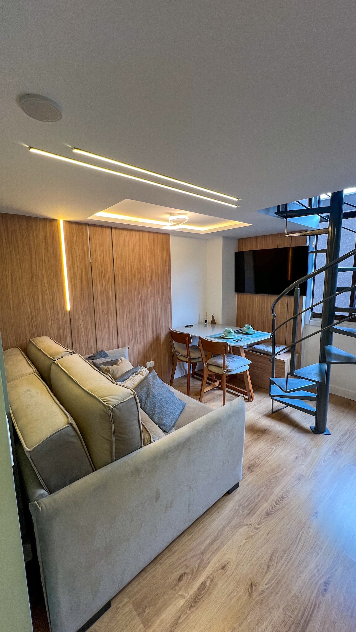 Disfruta de la comodidad y la practicidad en este estudio impecable, dúplex de 35 m2. Ubicado en el corazón de Ecoville. Ideal para una pareja, familias pequeñas o ejecutivos. Ropa de cama y toallas. Internet WI-FI de 600 MB, NETFLIX. Ampla balada con barbacoa, hermosas vistas de la naturaleza. Tiene 02 televisores inteligentes de 43" y 32". Ubicación privilegiada: tiendas Barigui, parques, restaurantes, panaderías, farmacias, cafés, PUBs, mercados. A solo 5 km del centro de Curitiba. Servicio personalizado antes y durante la estadía.