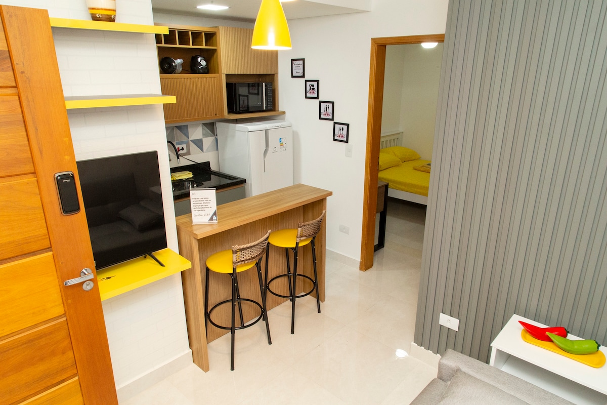 Estudio ubicado a solo 5 minutos a pie de la estación de metro Parada Inglesa y metro Tucuruvi, cerca de los comercios locales (mercado, panadería y farmacia). La propiedad está equipada con una cama doble, un sofá de dos plazas, un televisor inteligente de 32 pulgadas, una mesa y una silla de oficina. La cocina está equipada con horno microondas, minibar, purificador de agua fría, cafetera Nespresso y utensilios básicos de cocina. El baño está limpio, se proporcionan toallas y secador de pelo. El estudio cuenta con Wi-Fi (VIVO Fibra).