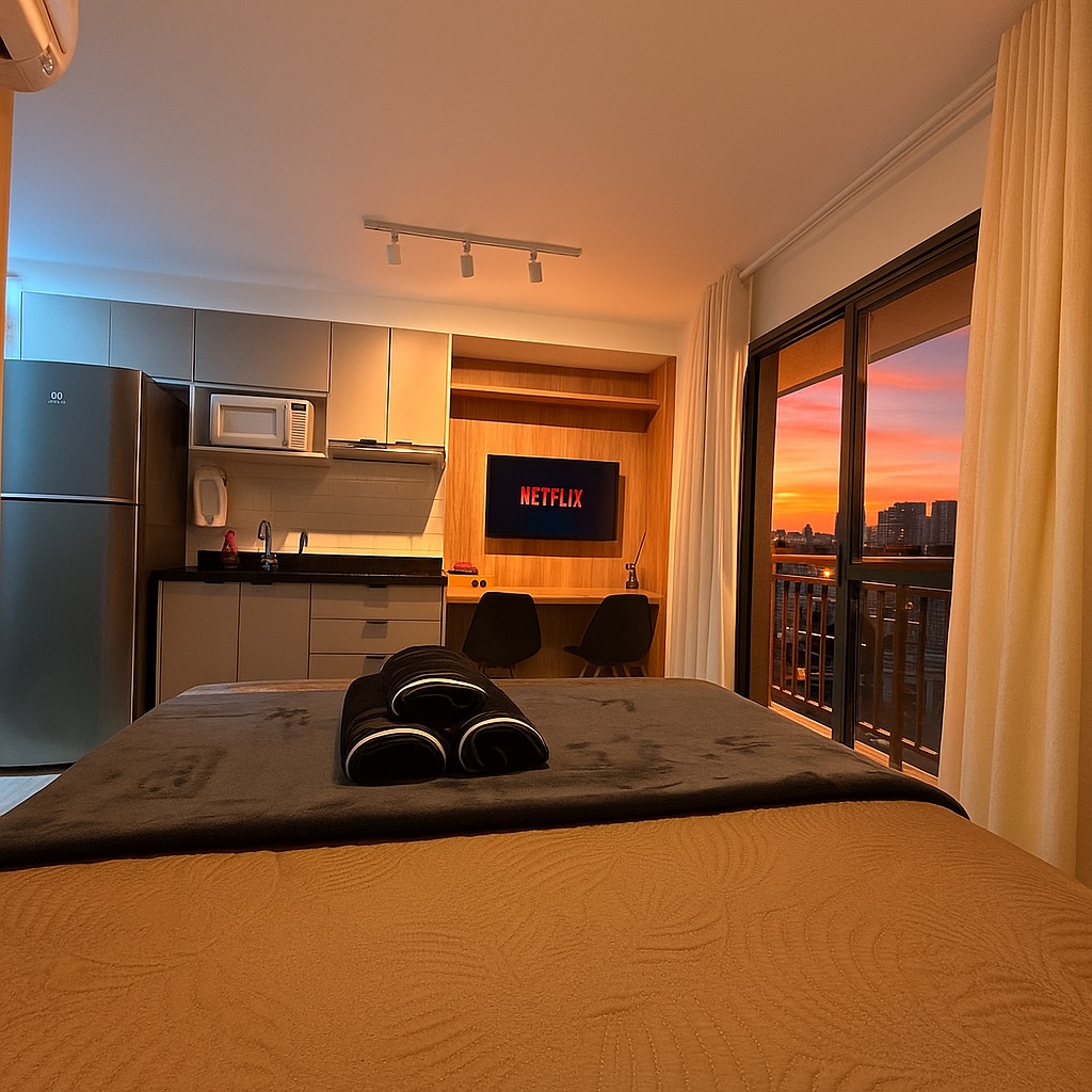 Estúdio espaçoso com muito design, arquitetura e a melhor vista de São Paulo. Loft completo! Com cama queen, closet, ar condicionado silencioso, cozinha completa, home office, WI-FI, TV 55” e uma belíssima banheira de imersão, de onde pode apreciar o seu drink preferido e curtir uma vista apaixonante. São Paulo toda estará há poucos minutos de você. Acesse o metrô andando apenas 200m. Reserve com tranquilidade! Proporcionaremos uma excelente hospedagem e uma ótima experiência!