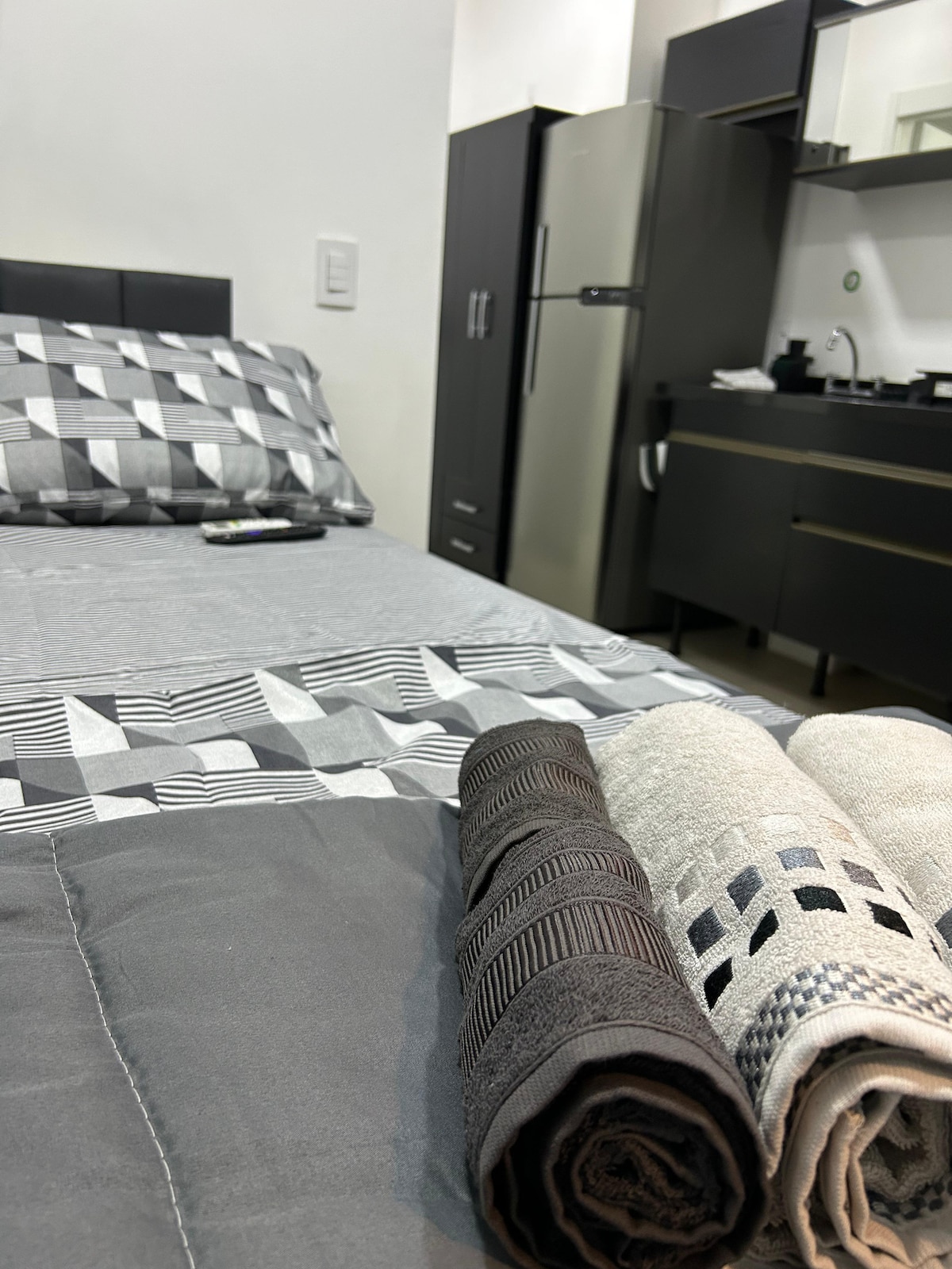 Elegante apartamento ubicado en el corazón de la Zona Norte de São Paulo, perfecto para quienes buscan una estancia cómoda y conveniente en la ciudad. Este apartamento de dormitorio y sala de estar combina una decoración moderna y acogedora con muebles nuevos, proporcionando un ambiente único para nuestros huéspedes. Ideal para parejas, amigos, viajeros y visitantes/expositores de ferias en el Expo Center Norte. Tiene capacidad para una pareja, pero también tenemos un sofá cama en la sala de estar con capacidad para 2 personas más.