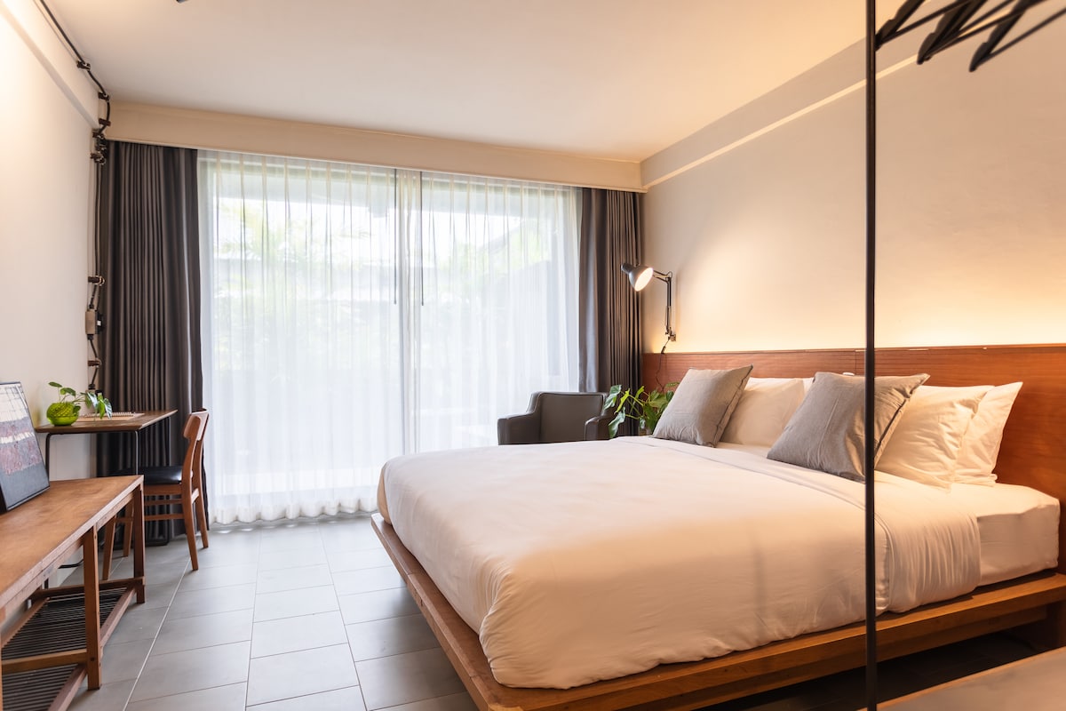 La habitación doble superior tiene capacidad para 2 personas con una cama tamaño queen y un colchón de calidad de hotel de 5 estrellas. Disfruta de un diseño moderno y minimalista con aire acondicionado, TV de pantalla plana, nevera, escritorio y wifi de alta velocidad gratuito. Ubicado en una zona tranquila, a solo 15 minutos a pie de MBK y Siam Center, perfecto para viajeros que buscan comodidad, valor y conveniencia en el centro de Bangkok.