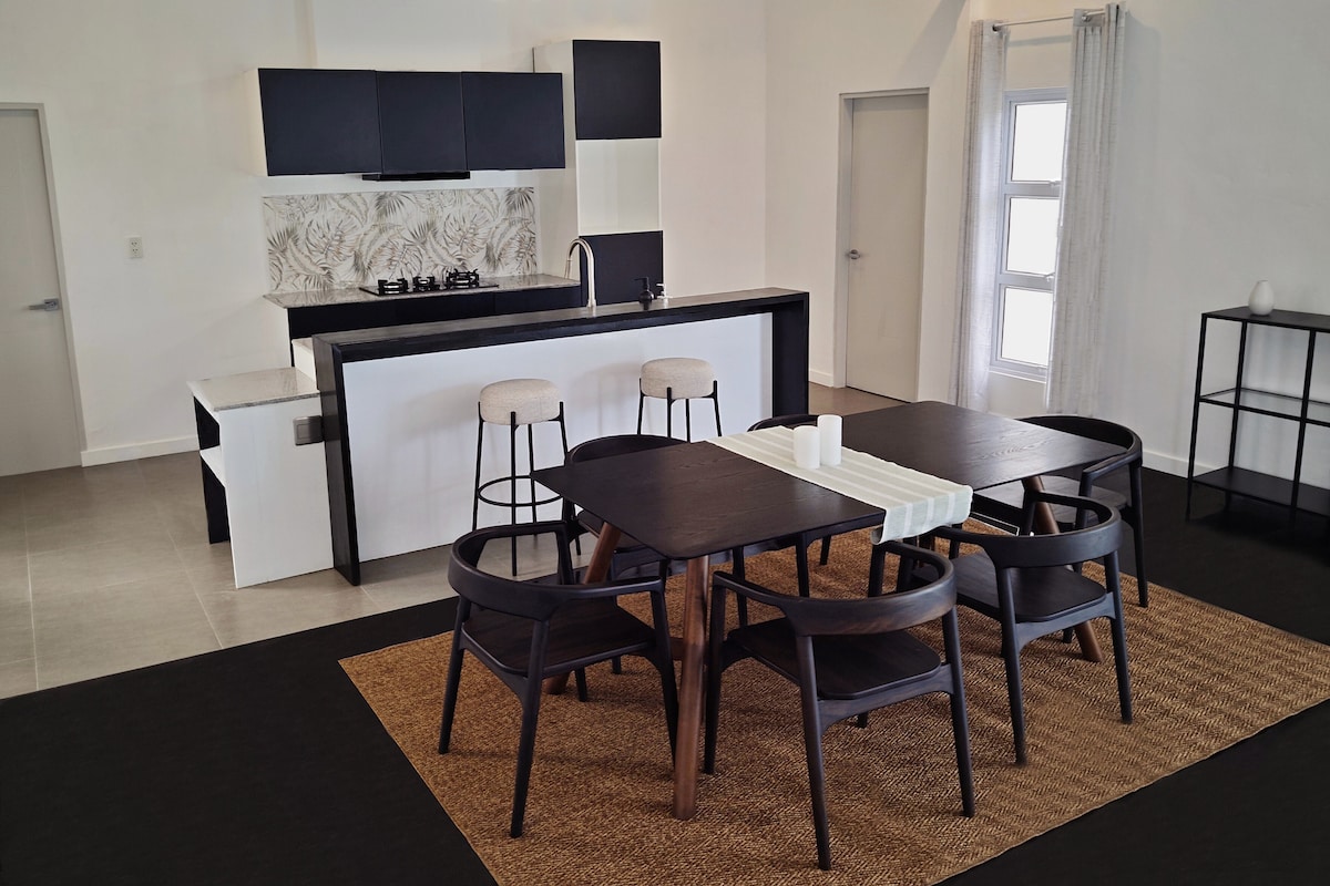Your luxe private suite is a part of a residential villa which includes access to swimming pool, private patio, a modern bathroom (with hot/cold running water), bidet, a dining/living area, a bar, & gourmet kitchen. Also included are free Netflix and WiFi and TV's in the living room and bedroom. This is ideal for a 4-5 guests family gathering.