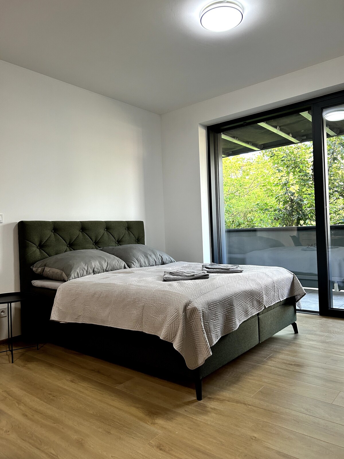 🌿 Cozy Studio in Rezidencia Albelli Enjoy a peaceful stay in this modern STUDIO apartment in the quiet Rezidencia Albelli complex. It features brand-new furnishings, a comfortable queen-size bed (160×200 cm) 🛏️, and air conditioning ❄️. Relax on the balcony with outdoor sofa, enjoy free parking, a private garden, and an on-site grocery store 🛒. The main street is just a 12-minute walk away. For extra comfort, the apartment also includes blinds and a mosquito net ☀️🦟.