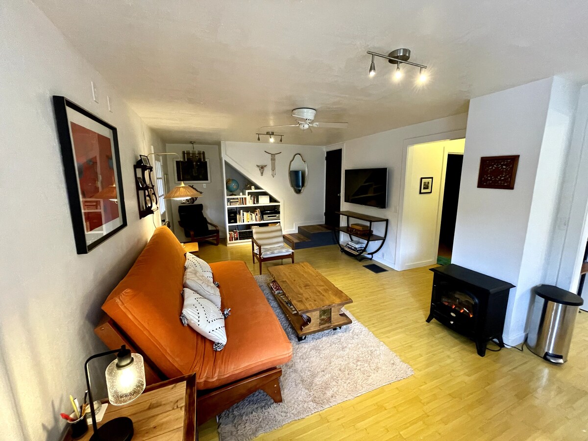 The Top Story es un apartamento acogedor y único situado en el segundo piso de una granja de principios del siglo XX. Es una unidad de 2 dormitorios, 1 baño con una cocina completa y zona de estar. ¡Gran espacio para desconectar! Este espacio rústico y elegante de la granja es increíblemente encantador y auténtico para la zona; también incluye acceso al patio delantero y trasero, bañado por el sol y lleno de flores con un jardín orgánico y un parche de calabaza de temporada. Los huéspedes pueden contemplar las estrellas mientras disfrutan del fogón o del comedor exterior.