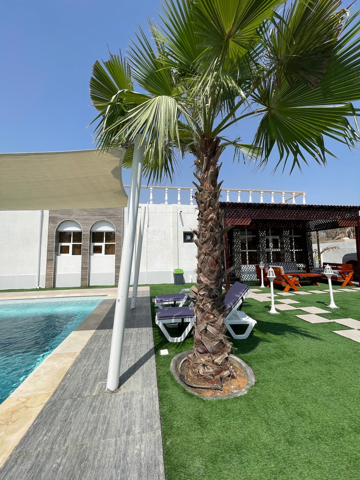Disfruta de una estancia tranquila en una hermosa casa en una granja privada rodeada de árboles y espacios verdes con una piscina privada. El lugar es ideal para familias y aquellos que buscan relajarse lejos del ajetreo y el bullicio de la ciudad. La casa está totalmente equipada (3 cómodas habitaciones, cocina, asientos al aire libre, parrilla). Cerca de los servicios y las carreteras principales, está a poca distancia en auto de Dubai y ofrece una gran vista de la naturaleza. Una auténtica experiencia rural con lujo y confort en medio del desierto