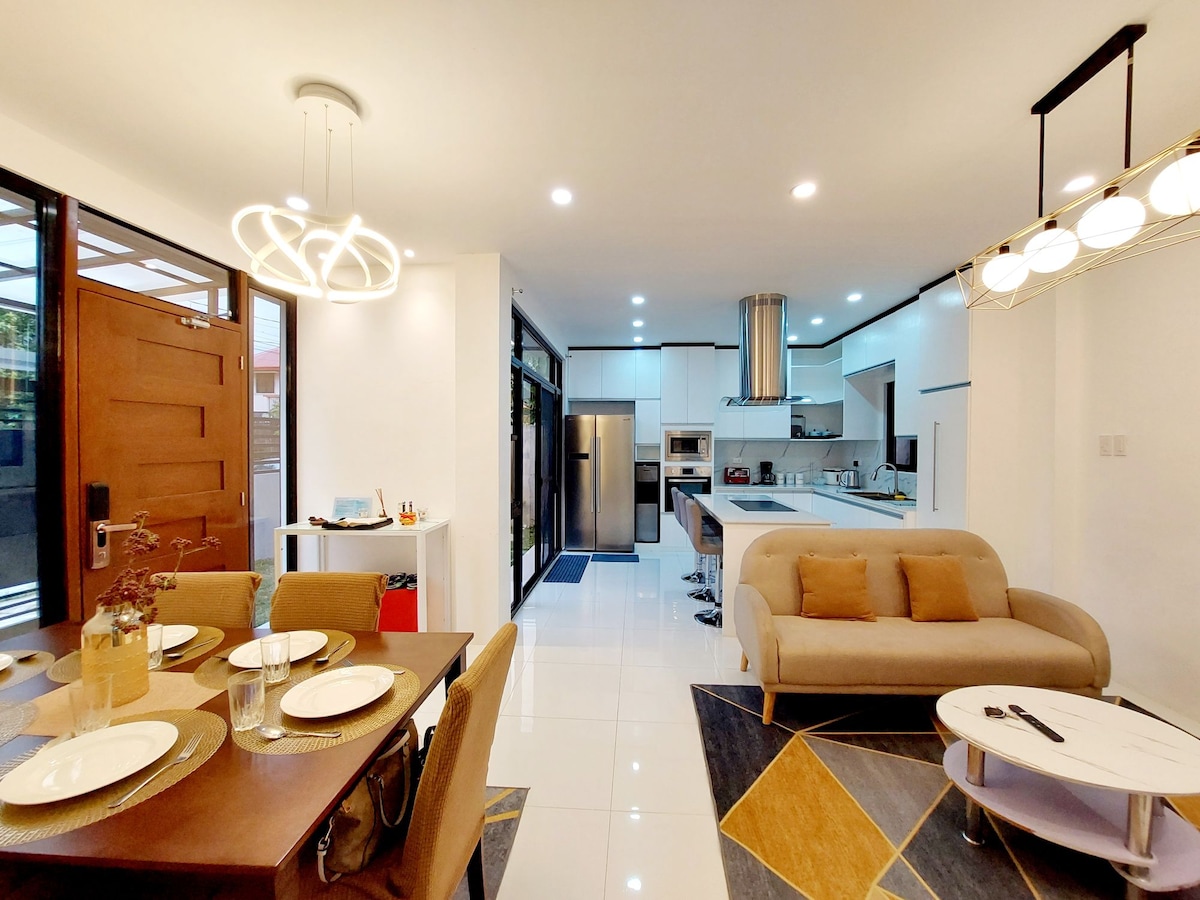 The whole group will enjoy easy access to everything from this centrally located place. Brand new house. 4 bedrooms plus 1 entertainment room (Netflix, HBO, Disney+). With working space. 2.5 Bath, one with bath tub & hot shower. Modern kitchen & 5 burner gas range. Good for staycation & to celebrate special occasion. Ideal for 8 pax but can be stretched to 14 pax Close to Airport and 15 to 20 mins away.