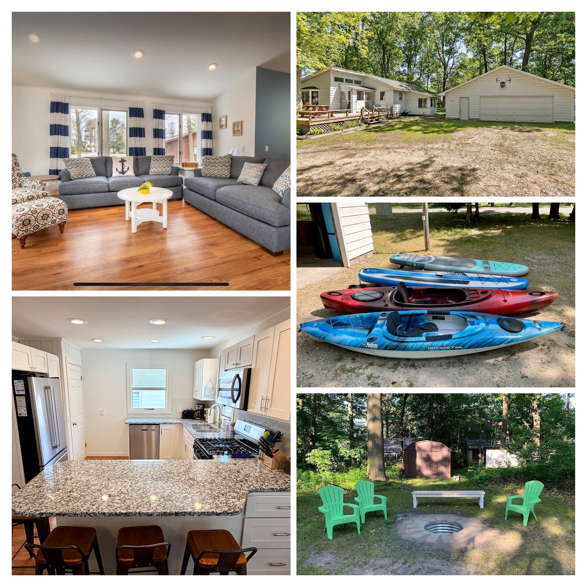 Relájate en esta casa de campo de 3 dormitorios recién renovada con acceso a Silver Lake (para embarcaciones no motorizadas: kayaks, tablas de remo, etc.). Estamos a poca distancia a pie de los paseos en Mac Wood's Dune, Whippy Dip, el faro de Little Sable Point y la playa del lago Míchigan, y a poca distancia en coche del acceso a las dunas. ¡Trae el barco y los vehículos todoterreno! Hay mucho espacio para aparcar en la gran entrada para remolques. ¡Disfruta de tu estancia con todo lo que esta casa tiene para ofrecer: aire acondicionado, terraza, chimenea, mesa de ping pong y mucho más!