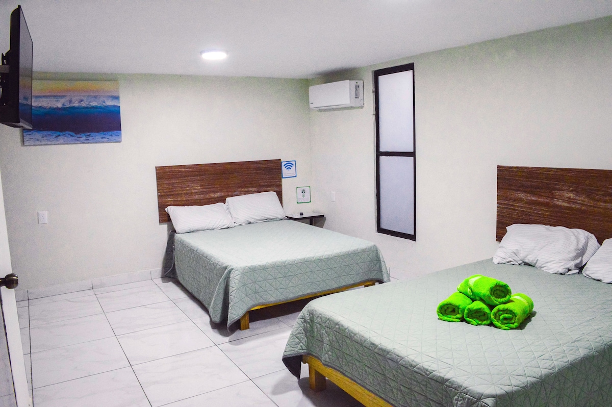 Tómate un descanso y Quédate con nosotros en posada Don Rulo. estamos a pasos de mercado Pino Suárez, catedral, playa pinitos, olas altas y machado. todas las rutas de camiones pasan a una cuadra de aquí. la posada cuenta con 4 habitaciones dobles y dos sencillas. puedes rentarla entera o por habitación. contamos con wi fi, TV smart, clima, y frigo en cada habitación. la cocina esta en primer planta y cuenta con todo. la entrada es autónoma la habitación 7, estará lista para tu llegada