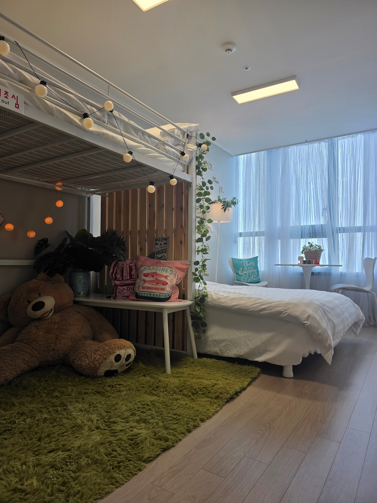 Piso alto con vistas al mar y al parque, Vista al mar desde la ventana donde los dos lados están fríamente perforados, Amplio y aireado estudio dúplex, Alojamiento emocional interior de ratán:) Ventana ▪️de doble cara con vista al mar, vistas al parque ▪️Dúplex, techos altos, apertura fresca Aeropuerto de▪️ Incheon a 20 minutos en auto ▪️Gueup Batter a 2 km 6-7 minutos en coche ▪️Netflix Tiene ▪️capacidad para 8 personas ▪️Horas de uso - Llegada: 4:00 p. m. - Salida: 11 a. m. * El registro anticipado/salida tardía requieren cargos adicionales y programación, así que ponte en contacto con nosotros por adelantado. No se ▪️admiten mascotas. Está absolutamente prohibido fumar en ▪️interiores ▪️ No se permite la barbacoa de panceta de cerdo, no se puede hornear carne/pescado/gambas, no se puede cocinar sopa de cangrejo/maeuntang con olores fuertes, etc. ▪️Estacionamiento (1 auto gratis) - Edificio B1 ~ B4/Estacionamiento: conexión de alojamiento (hay un costo adicional para más de 2 autos)
