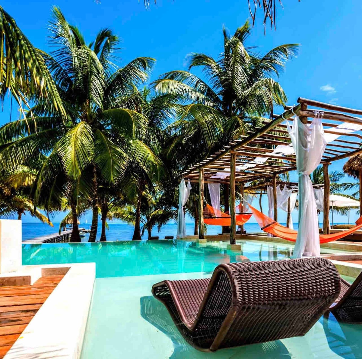 Villa privada frente al mar Caribe en el muelle