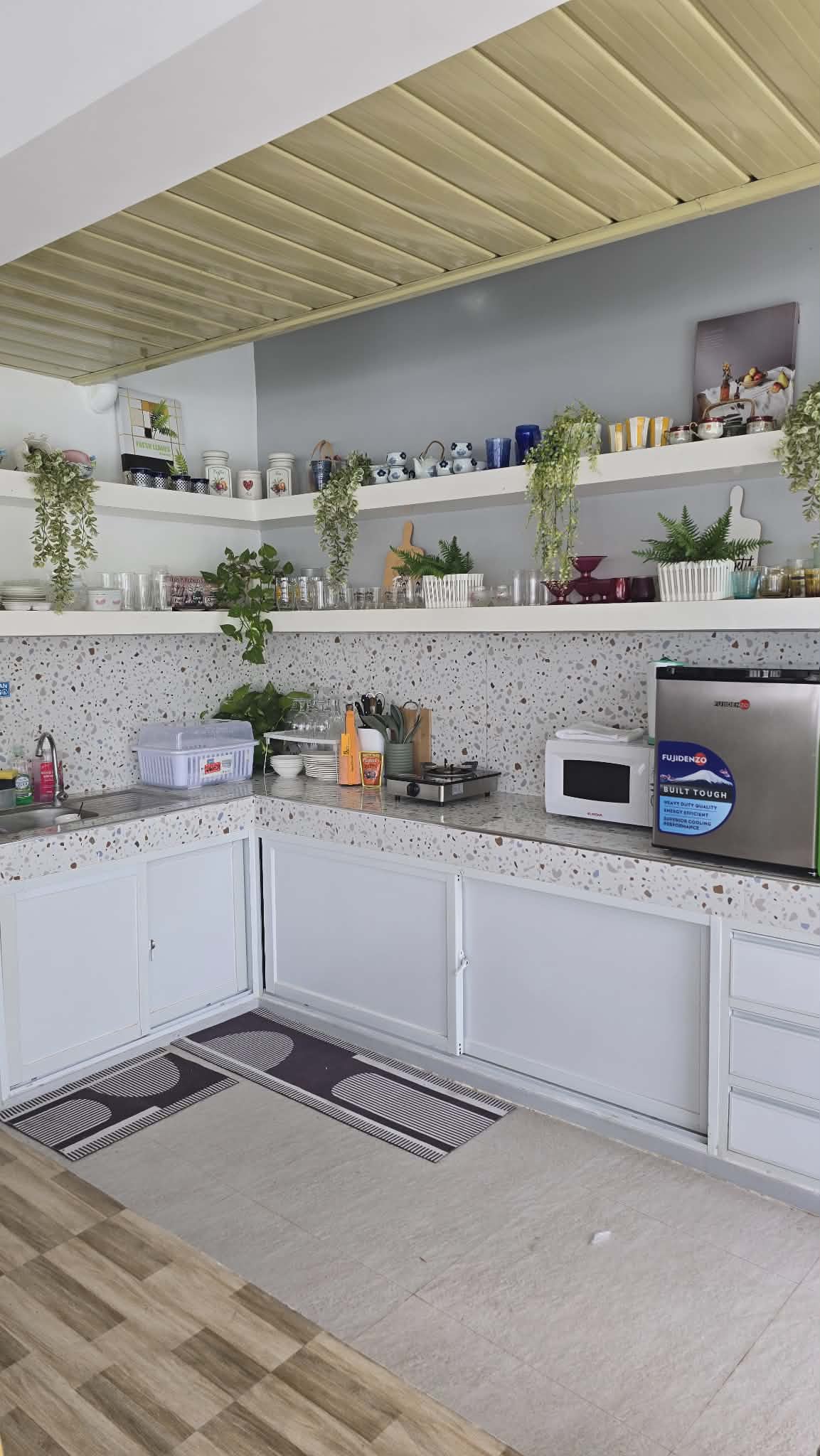 Book your private stay in this Modern Tropical Villa’s 1st & 2nd floor with your exclusive swimming pool finished in premium natural green Sukabumi stone. Rooms: 🛌 3 BR with AC 🛀 4 T&B (toiletries included) 🎤Karaoke Machine (9:00 pm max) 🛋️ 2 Living Area (1 per floor) 🍳1 Outdoor kitchen (+1 on 2nd fl) 📺TV with Netflix (1 per floor) 🚗Max. 2 Car Parking Others: 🧴toiletries available (6 towels only) 💧drinking water provided (4 gallons only) 🍽️ kitchen wares and cookwares