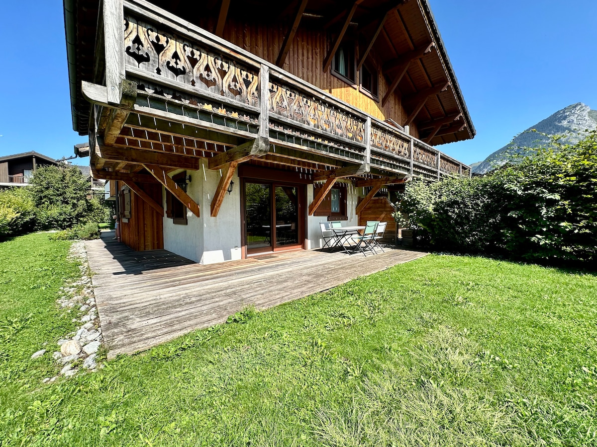 Encantador chalet antiguo de madera y piedra con vistas al Mont Blanc