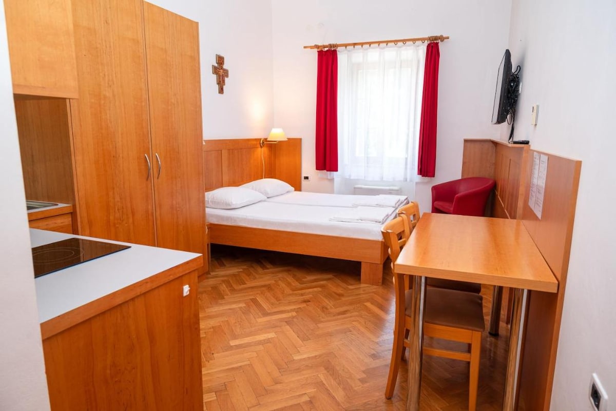 Te damos la bienvenida al Hostel Sveta Ana, un hostal único situado en un monasterio franciscano restaurado del siglo XVI. Disfruta del tranquilo parque donde la rica historia se mezcla con comodidad. El hostal ofrece 42 camas permanentes en 22 acogedoras habitaciones, cada una con baño privado. Su ubicación, a pocos pasos del casco antiguo de Koper, ofrece fácil acceso a las principales atracciones, playas y eventos culturales. ¡Un punto de partida perfecto para una exploración relajada de la costa de Eslovenia!
