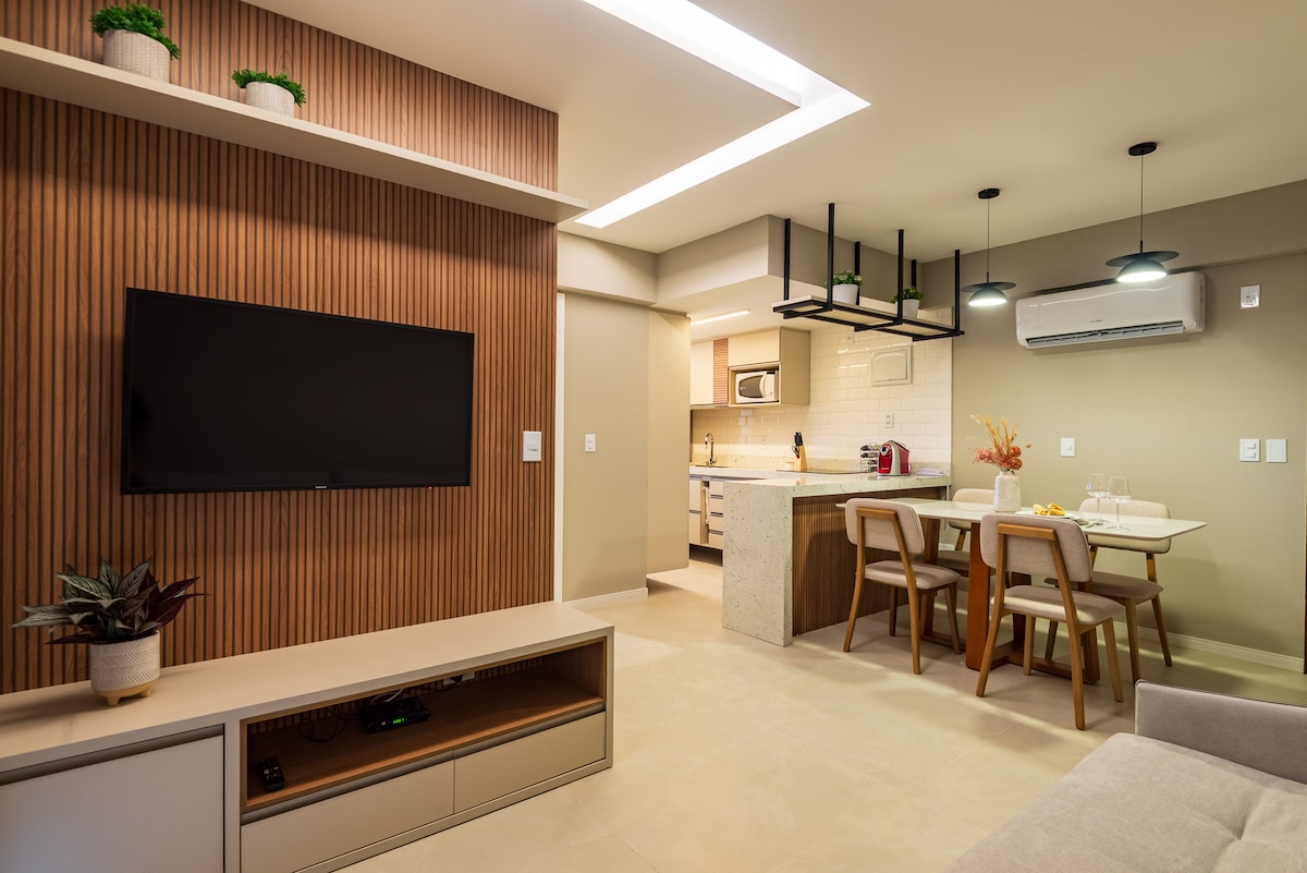 Sin apto: - Wi-Fi. -station - Reloj digital -Elevadores - Aire acondicionado en la suite. - Operadores de control remoto en la sala de estar y el dormitorio. - Lavadora. -Chuveiro Eletrico - TV inteligente 43 y otra en la suite de 32 dormitorios con Netflix, Max , Prime, Globoplay incluidos. - Ropa de cama incluida - Jabón y toallas. - Cocina completa. - Mercadinho las 24 horas. - Academias - Piscinas
