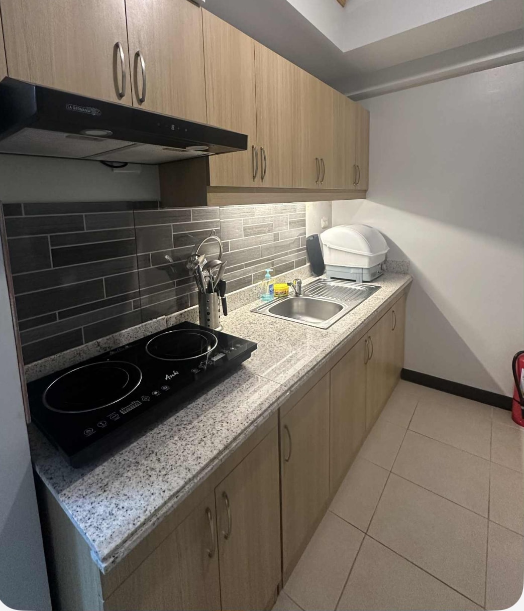Disfruta de un acogedor estudio en un edificio de apartamentos de marca con una gran piscina. Es el lugar perfecto para relajarse, escapar de la agitada ciudad o simplemente dormir bien después de un largo vuelo. TendrÔs todo el estudio por tu cuenta, incluyendo una cama tamaño queen, una cocina totalmente equipada con nevera, arroces y olla de agua, mesa de comedor, wifi gratuito de 35 mbps, TV, aire acondicionado, balcón y baño. Lo mÔs destacado es definitivamente la gran piscina de natación. El centro comercial gigante SM estÔ justo al otro lado de la calle.