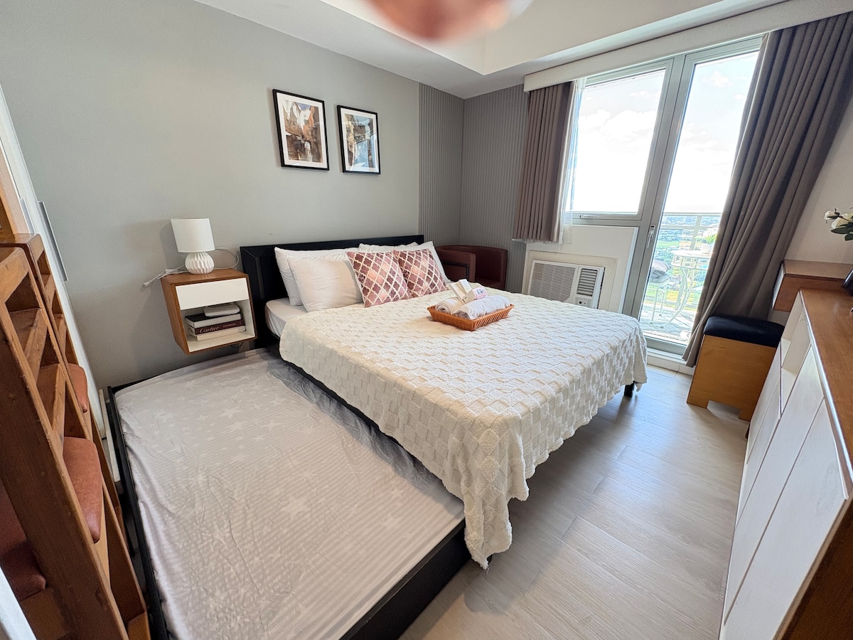 This modern, well-equipped unit is perfect for travellers looking for convenience, comfort and easy access to local hotspots. You will experience a hotel ambiance with spacious balcony that overlooks the stunning Mt. Arayat. You are just few steps away from the vibrant Walking Street and restos and bars. You are also very near SM Clark & Clark Int'l Airport. On the ground floor, you'll find a Convenient Store(7/11), Coffee Shop & Bar. For elevated experience try the Clouds Bar at the roof deck.