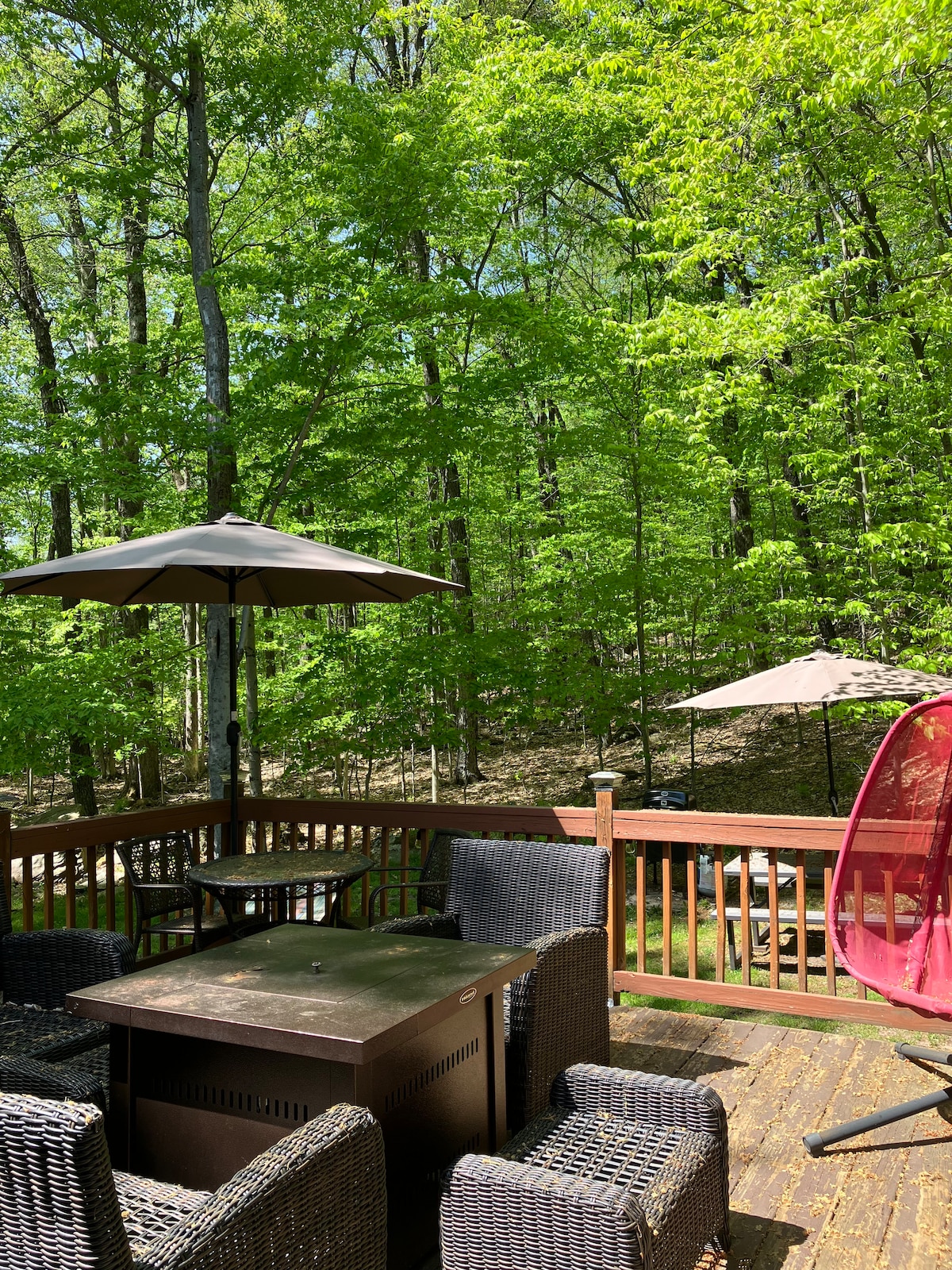 ¡Ubicado en el bosque de Catskills, a menos de 2 horas de Nueva York, encontrarás Birch Ridge A-frame! Esta hermosa cabaña de 2 dormitorios se encuentra en 7 acres privados con áreas de senderismo y un arroyo estacional. Disfruta de la pared de ventanas que crea una estancia mágica con impresionantes vistas. Este es el lugar perfecto para relajarse, sentarse en la sauna del barril, caminar por el bosque privado, asar malvaviscos sobre el fuego y empaparse de los sonidos de la naturaleza. ¡Un espacio hecho para crear recuerdos que durarán toda la vida!
