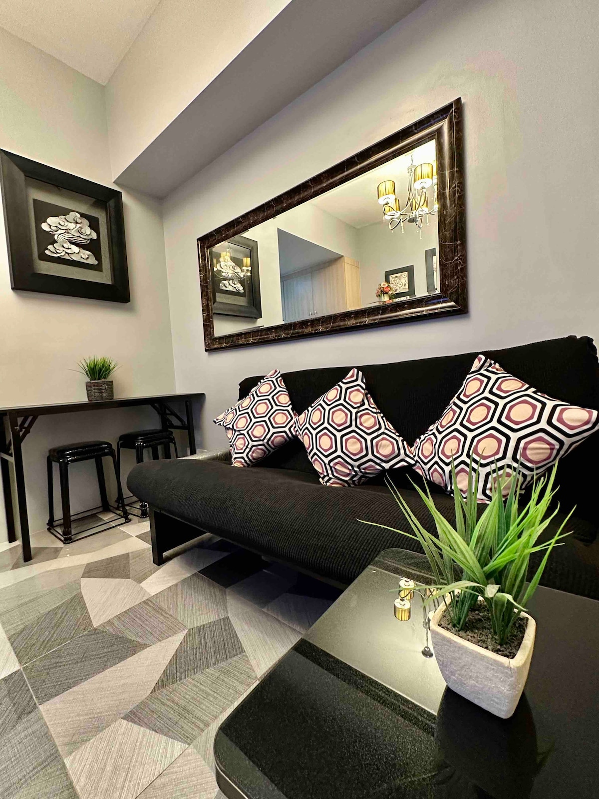 Este lugar elegante y único se inspira en el interior asiático de Crazy Rich. Situado en el corazón de Bonifacio Global City, este nuevo espacio aporta una experiencia perfecta al principal distrito de negocios de estilo de vida del país. - Llegada autónoma sin llave con cerradura inteligente - Televisión inteligente con máximo/HBO de 50 pulgadas 4k - Aire acondicionado y luces inteligentes - Wifi muy rápido de 250 Mbps. - Estación de trabajo tranquila Acceso de los huéspedes Piscina (solo de martes a viernes) No hay gimnasio, pero sí en el centro comercial Estacionamiento Canchas de baloncesto y bádminton (deben reservarse una semana antes)