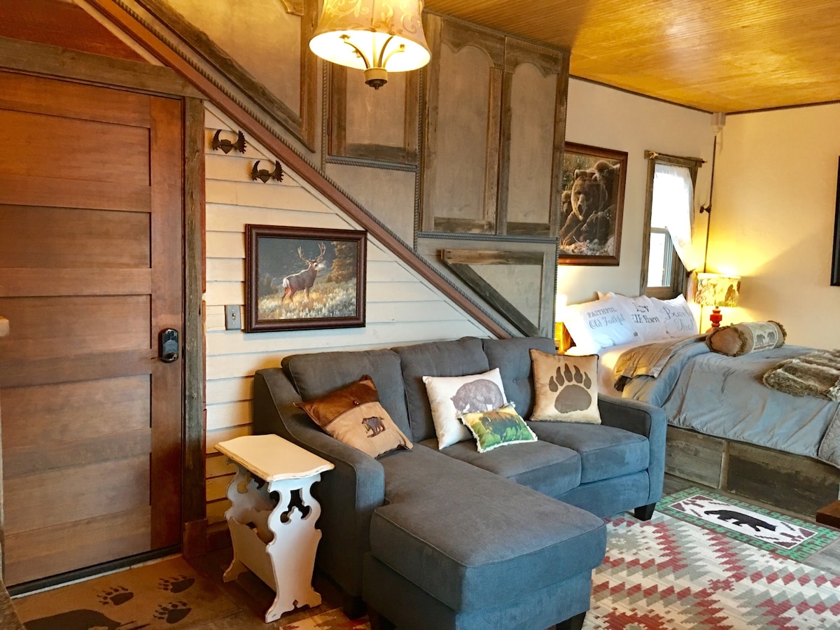 Boutique "Park Hotel Yellowstone" "Hermosamente salvaje" Restaurado en 1902 Comodidad y comodidad. A 1 cuadra/parque/río Yellowstone, vistas y montañas. - Camina hasta todo lo que necesites en la ciudad. Restaurantes, café, visitante Ctr -Todas las suites privadas con baños . - Patio/porche privado compartido con fogata, parrilla para barbacoa. - Cómodas camas tamaño QUEEN, cocinas, cable wifi gratuito. - Los animales de prisa vienen de visita. - Explora todo el parque desde esta ubicación. -10% de descuento en rafting, caballos, barbacoas, tirolina.