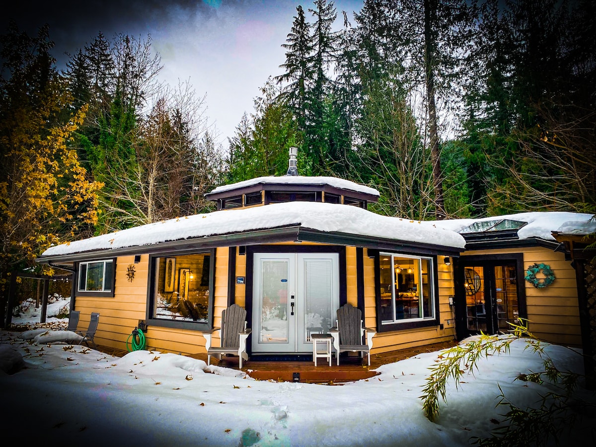 Desconecta de la rutina en este alojamiento único y relajante ubicado junto al río Skykomish. Una verdadera experiencia de lujo donde la serenidad y la naturaleza se combinan con servicios modernos. Un mural del paisaje forestal del noroeste del Pacífico se encuentra a un lado y el río salvaje Skykomish al otro. Cocina de granito brillante equipada con todo lo necesario para crear tus comidas favoritas. Las águilas volarán mientras disfrutas de tu bebida en el acogedor jacuzzi. ¡Una visita que durará como un recuerdo para siempre!