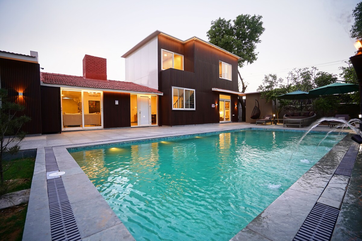 A private luxury hideaway close to the Aravalli Hills—near the city yet far from pollution, with cleaner air and lower AQI. Unwind on lush lawns, sway on the hammock, float in the pool, and wake to crisp mornings and serene views. Savour lawn games, starlit barbeques, and elegant evenings under the green-roof gazebo—perfect for alfresco dining, music, and celebrations. A peaceful, indulgent retreat for families, friends, and memorable stays.