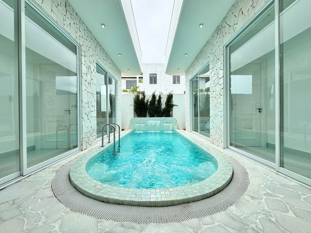 🏠Welcome to FIN VILLA❤️ 🛏️ 5 bedrooms – 5 beds – 6.5 bathrooms ❄️ FullL A/C 🛋️ Modern and cozy living room & kitchen 💦 Infinity pool cool & 4 relaxing massage seats 🛗 Convenient elevator 🎱 Entertainment Billiard 🌞 Sun loungers 🧖 Dry sauna room 💧 Clean water filtration system 🔥 Free BBQ charcoal 🍓 Complimentary welcome fruits & drinks ✈️Free airport pickup for bookings from 4 nights (before 22:00) ✨A modern space,perfect for a truly relaxing 🏖️Man Thai Beach 5-minute walk away🥰