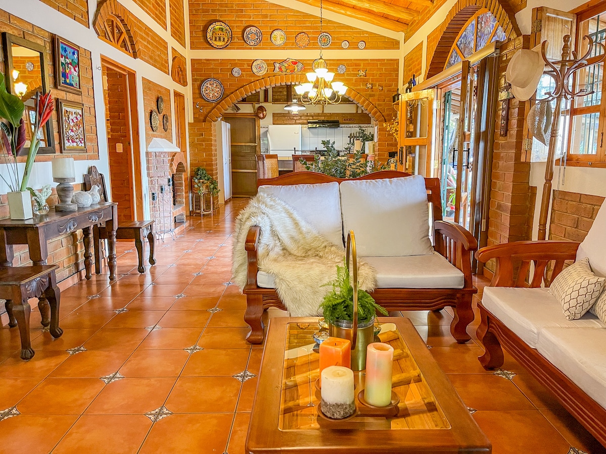 Relax with your family in this beautiful, quiet, and cozy retreat, offering a pleasant climate, lush gardens, and stunning views of the Apaneca mountain range. The house is fully equipped and features a master bedroom with a queen-size bed, plus two additional bedrooms, each with two twin beds—providing ample space to comfortably accommodate up to six guests. The home is furnished with a kitchen, refrigerator, coffee machine, and many other amenities, including TV and Starlink Internet.