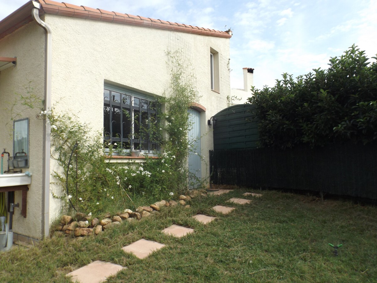 🌿 Entre mer, montagne et lacs Joli cottage lumineux avec séjour cathédrale, vue belvédère sur les Albères, 2 chambres cosy, terrasse intime 20 m², en face de la voie douce V8 pour vos balades. Idéalement situé, cadre de nature très accessible en voiture : à 20 min de la mer, proche Céret, Collioure, Espagne… ✨ Gîte familial, sans service hôtelier✨ ✨tarifs Curistes ✨ 🧖♀️Options : sauna /linge /ménage si souhaité ▶️ modalités ▶️ Lire « mon logement » 🙏 Au plaisir de vous accueillir 🌿