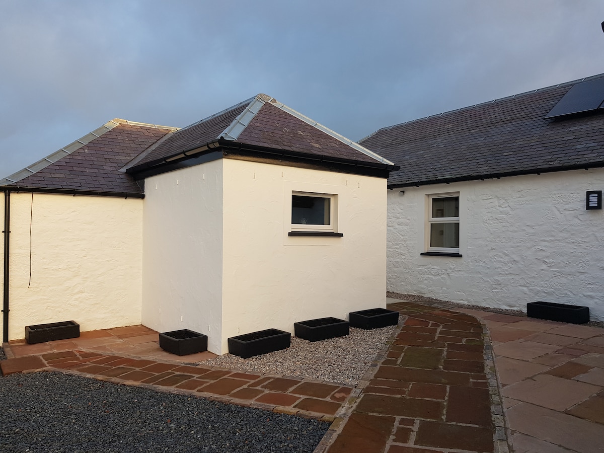 Mews Cottage es un granero reconvertido en una finca privada. Ideal para vacaciones familiares, golfistas y aquellos que disfrutan de un paseo por el campo o la playa. Ubicada dentro de una finca rural privada, no hay tráfico de paso, lo que hace que la experiencia sea aislada. Hay kilómetros de playas de arena y famosos campos de golf a 10 minutos en coche de Prestwick norte a través de Troon y más allá.