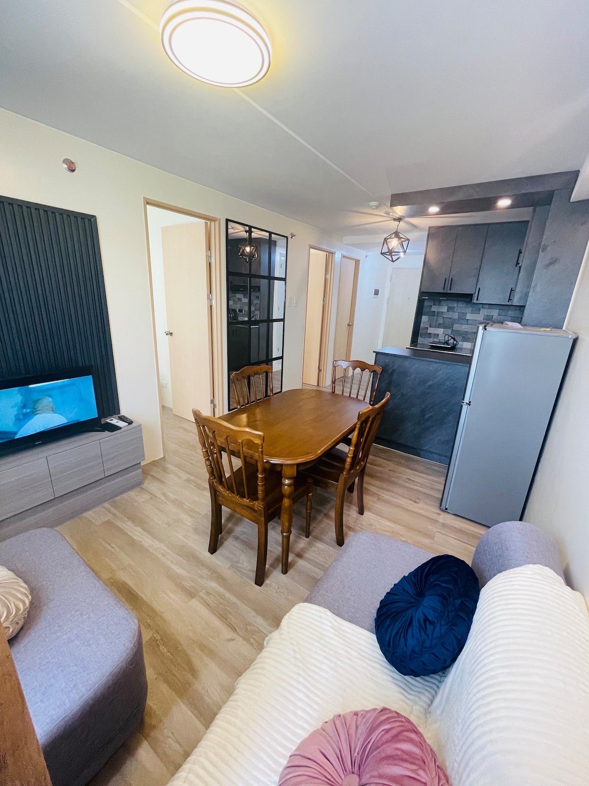 Este es nuestro humilde estudio con capacidad para 3-4 personas. Tenemos una cama de tamaño doble con una cama individual extraíble. También tenemos un sofá cama para 1 persona. Ofrecemos internet de alta velocidad. Tenemos instalaciones de cocina como cocina de inducción, hervidor de agua, etc. Tenemos TV de 43 pulgadas con Google Chrome con NETFLIX, Premium Youtube y Primevideo Tarifas de la piscina: incluidas sin cargos adicionales Puedes disfrutar de una piscina olímpica, una piscina tipo resort y una piscina para niños. El estacionamiento es con pago (P250) y debe arreglarse con anticipación.