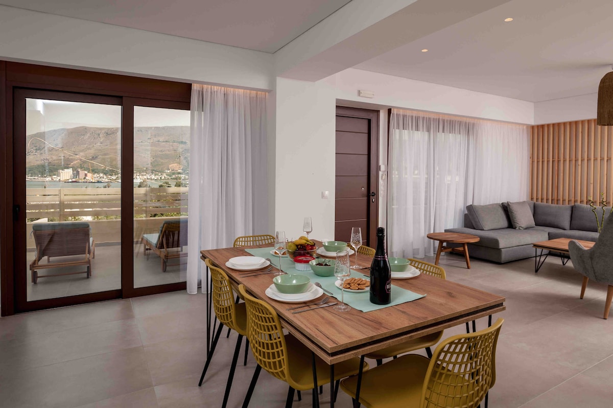 City Moments Penthouse I Un miembro exclusivo de Holiways Villas. Cómodamente ubicada en el centro de la ciudad de La Canea, una elegante propiedad te espera en una zona única que promete relajación y ofrece vistas insuperables de la ciudad, el mar y las montañas. Su decoración moderna y minimalista te da la bienvenida al entrar, como si estuvieras deambulando por las páginas de una revista de interiores. Se funde armoniosamente con el paisaje natural, las superficies de madera y la excelente calidad de la construcción.
