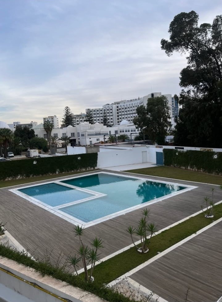 Cet hébergement élégant est parfait pour les groupes. un appartement spacieux S+1 situé devant Movempick sousse ➡️ Vue dégagée exceptionnelle sur piscine 🛌1 chambre confortable Salon lumineux Cuisine équipée Parking privé Balcon 🔧 Confort & équipements : ❄️ Climatisation centrale 🔥 Chauffage central 🚿 Robinetterie neuve 💰Tarif : 190 / nuitée Emplacement idéal, à deux pas de la plage, proche des restaurants et des activités de loisirs. Un choix parfait pour des vacances en famille