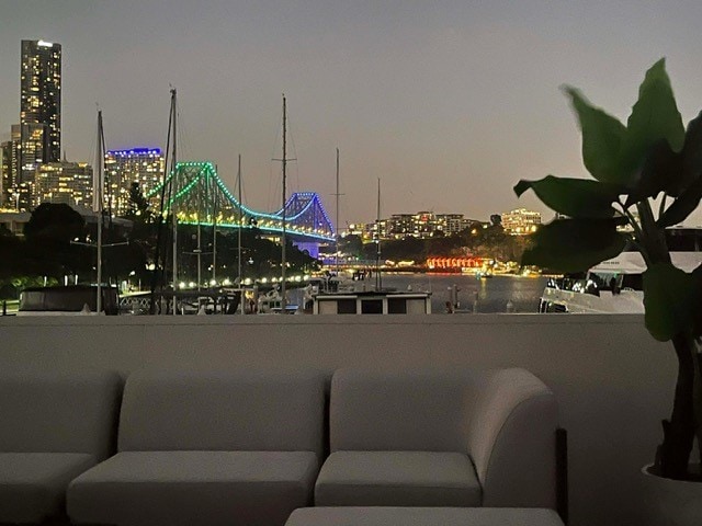 360° water views and stunning Story Bridge outlook. Modern kitchen, large bedroom with private deck, ensuite, and spa. Upstairs lounge with pull out sofa bed, bar, huge screen, BBQ, and sun deck. Moments from restaurants, bars, and city life. Perfect for couples or executives seeking a unique Brisbane experience. Steep ladder stairs—unsuitable for kids or guests with mobility issues. On ground floor there is also a 2 bedroom self contained unit enquire for pricing and availability
